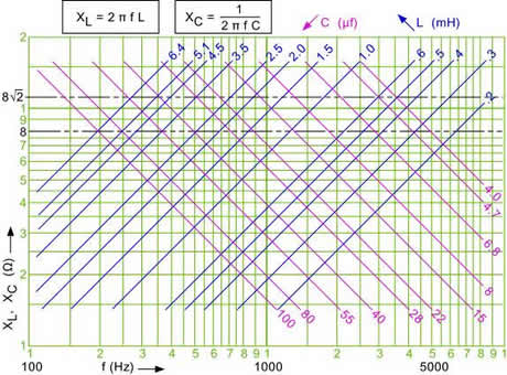 工作频率: Hz, 希望的电抗值: Ohms (eg: approx. 8 Ohms for first order crossover, 11.3 Ohms for second order crossover)